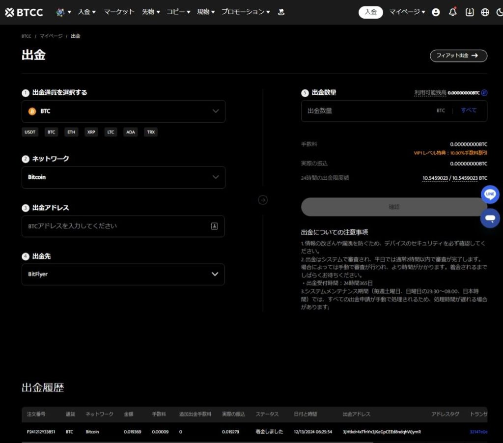 両方口座は開設してみましたが何となくBTCCの方がシンプルで分かりやすいと思いUSDTをBTCCに送金してみました。